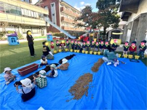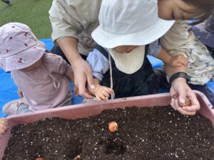 『先生絶対まちがえてるよ』ムードの子どもたち。小さな球根がチューリップになるなんて信じられない様子です💦