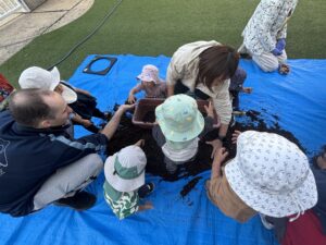 すると、Dragonfliesクラスの子どもたちがやってきました。並んで静かに説明を聞くお兄さんいお姉さん達にRespectのまなざし・・👀✨