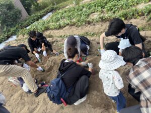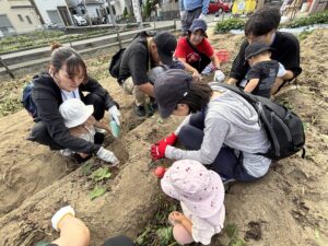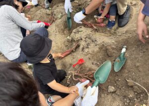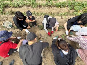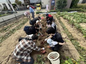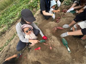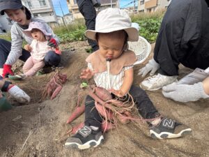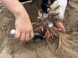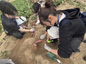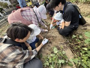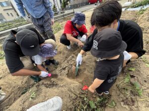 しーん・・・(おいもを傷つけないで掘るのは、想像以上に大変💦みんな無我夢中で掘っています。)