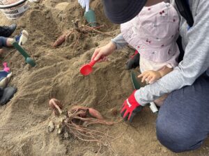 「まだまだ掘るわよ!」と張り切ってお母さんに指示したり