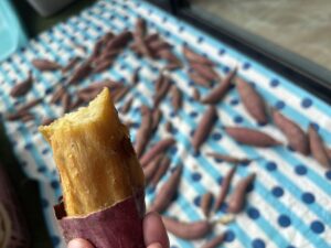 毎年恒例おいもをながめて休憩中に食べるフレッシュバザールの焼き芋は格別✨ほくほく満足のさつまいも大使でした😊🍠