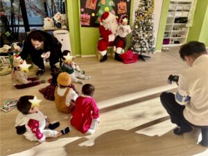 と思っていたら、本物のサンタさんに驚いて泣いてしまう子もいました。