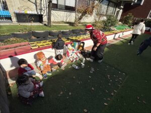今年1年がんばった子どもたちに、クリスマスプレゼントを持ってきてくれました。