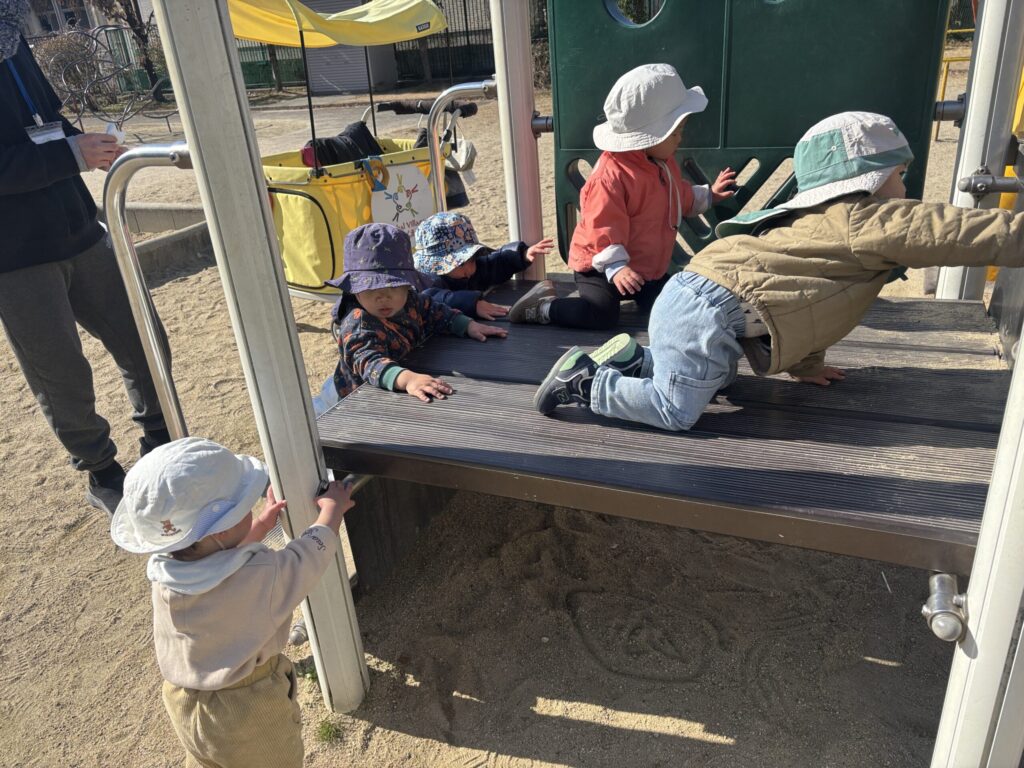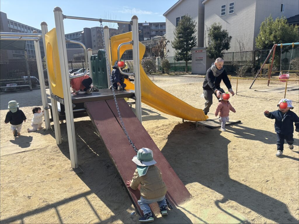 さて、その頃大阪のGlobal Villageほいくえんでは「未来のオリンピック選手」を目指して公園にやって来ました。