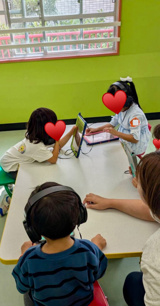 カブスクラスでは「Wet-Dry-Try」アプリを使って文字の書き方を練習しています。