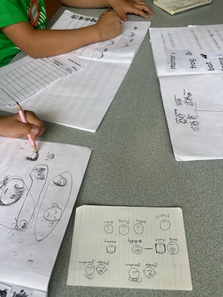 ブルークラスは今日、家族をテーマにした新しいユニットを始めました!このテーマをより深く理解するために、子どもたちは協力して大きな家系図を描きました。おばさん、おじさん、いとこなど、親戚も含めた家族全員を描きました。