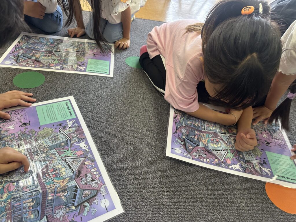 イエロークラスは、お化け屋敷のポスターを使ってハロウィンのモンスターについて学びました!同じ種類のモンスターが何体もいたので、子どもたちはそれぞれの生き物に可愛い名前をつけることにしました。