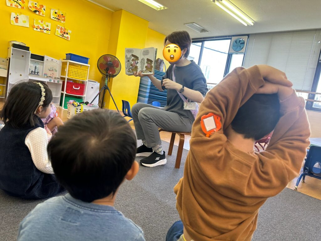 子どもたちは読み聞かせの時間に聞いた「ゾウとブタ」シリーズの愉快な物語に笑いが止まりませんでした。車なしでロードトリップの準備をするキャラクターたちに、子どもたちはクスクス笑っていました。