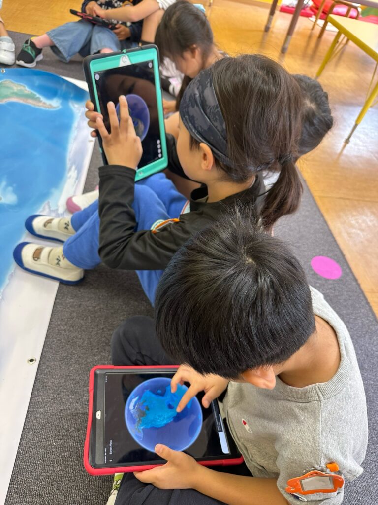 今月は、想像の世界旅行に出かけます!オレンジクラスは、夢の旅の計画を立て始めると同時に、Googleマップでアメリカ合衆国を探しました!