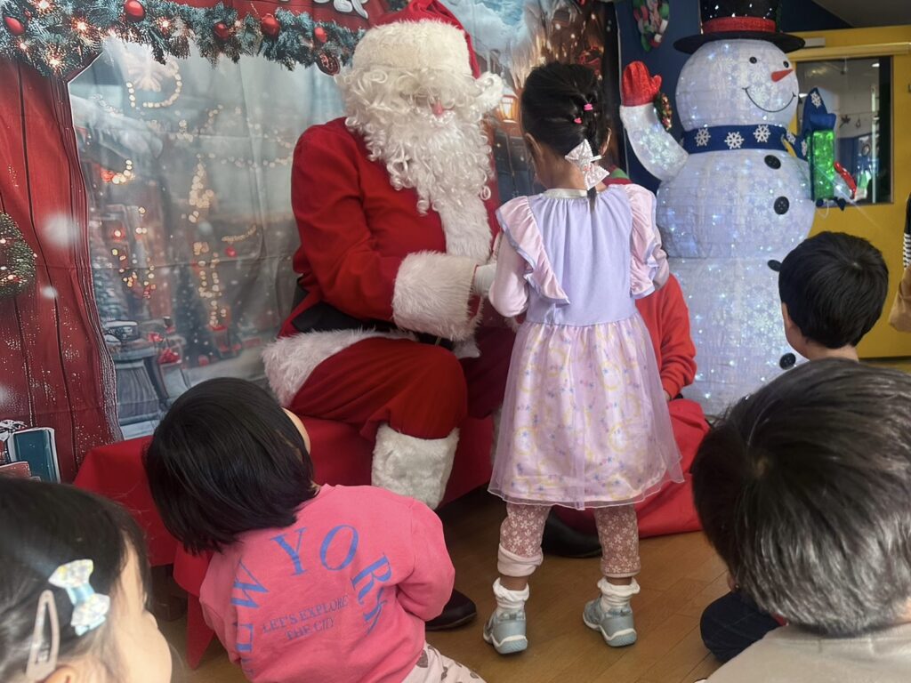 メリークリスマス!子ども達は特別なサプライズを受け取りました—本物のサンタクロースの訪問です!サンタさんは子ども達に「今年はいい子にしていたかな?」と尋ねると、子ども達は自信に満ちた明るい声で「はい!」と答えました。陽気な笑い声をあげながら、サンタさんは袋に手を伸ばし、一人ひとりに特別なプレゼントを贈りました。サンタさん、来年も待ってまーす!
