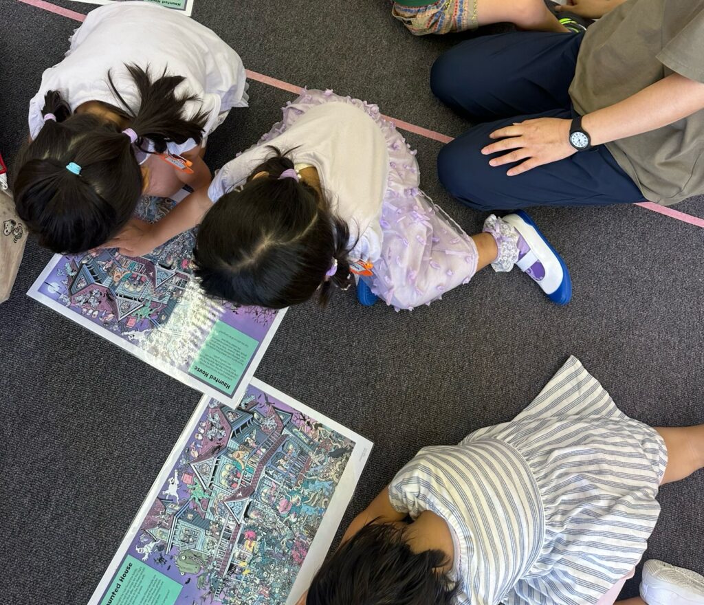 Chicks and Sparrows のみんなは、ハロウィンの単語をおばけ屋敷のポスターを使って楽しく学びました。いろいろなモンスターを見つけながら数を数える練習をし、なんとポスターの中に隠れたペンギンまで発見しました!