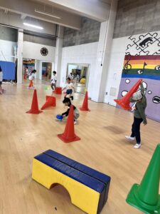 子ども達の知らないうちに、イースターバニーがジムに特別なプレゼントを隠していました。みんな、コーンの下やブロックの横などを隅々まで探していました!