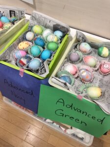 The children were also asked to bring in boiled eggs to dye. Some children who have been with us for a few years already had ideas for their designs, and it was wonderful to see their creativity shine. We had some truly beautiful and unique creations this year!