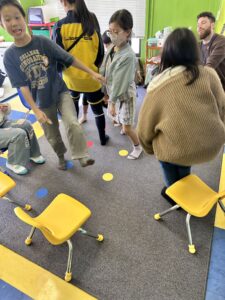 Advanced Greenクラスでも『フルーツバスケット』のイースターバージョンを行いました!自分の持っている卵の色が呼ばれると即座に椅子を移動しないといけないので、鬼のコールに耳を澄ませていました。ゲームはどんどんエキサイトし、楽しい時間になりました!